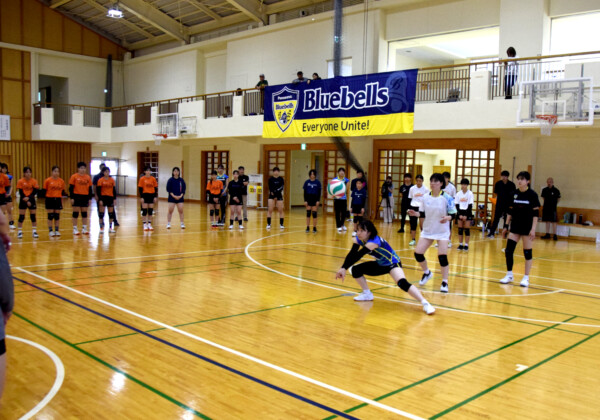 宮古島で合宿中の女子9人制バレーボールの強豪、パナソニックブルーベルズによるバレーボール教室が14日、伊良部島小中学校で開催さ...