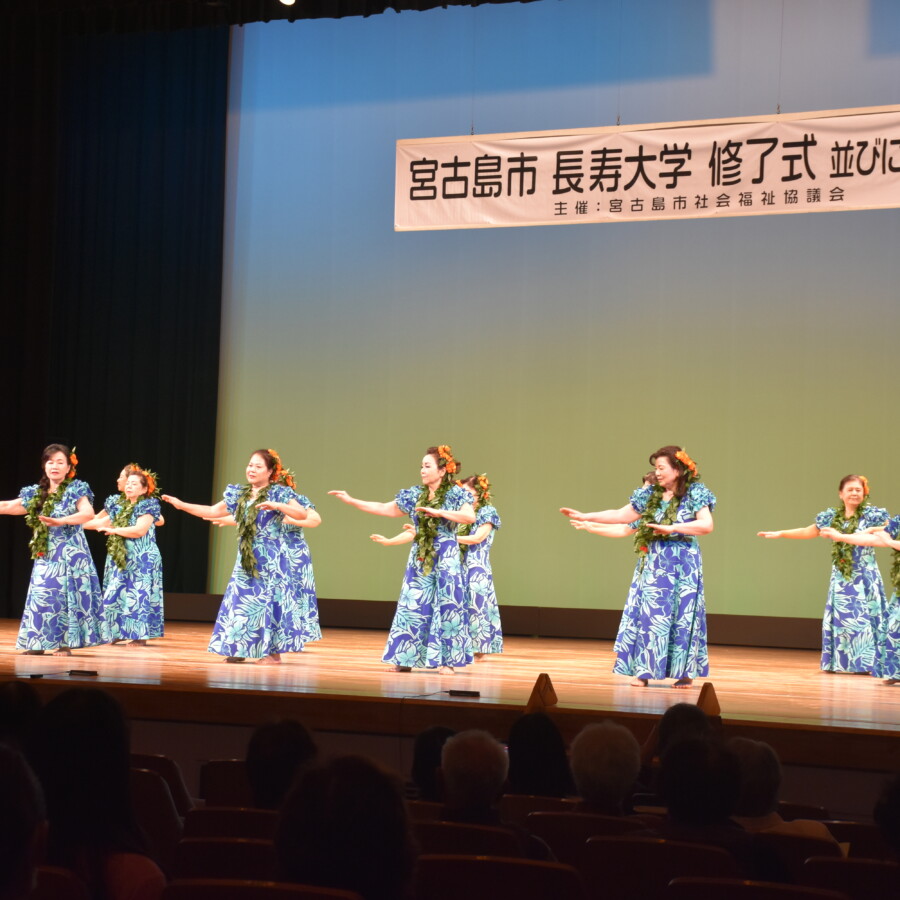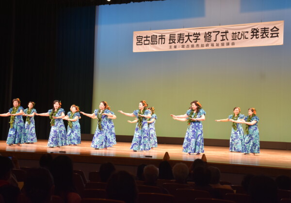 2025年度長寿大学の修了式・発表会(宮古島市社会福祉協議会主催)が14日、マティダ市民劇場で行われた。平良をはじめ城辺、上野...