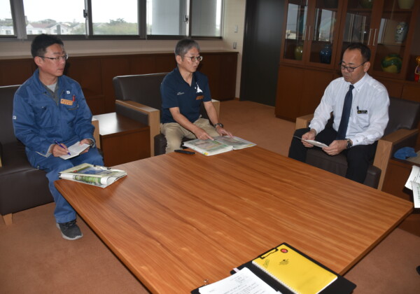 宮古伊良部農業水利事業所の今別府純一所長が24日、市役所に砂川朗副市長を訪問し、大雨や地震など災害で農地・農業用施設が被災した...
