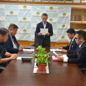 宮古島地区交通安全協会(下地隆之会長)と宮古島地区防犯協会(前川尚誼会長)、宮古島警察署(新垣健一郎署長)は25日、市役所に嘉...