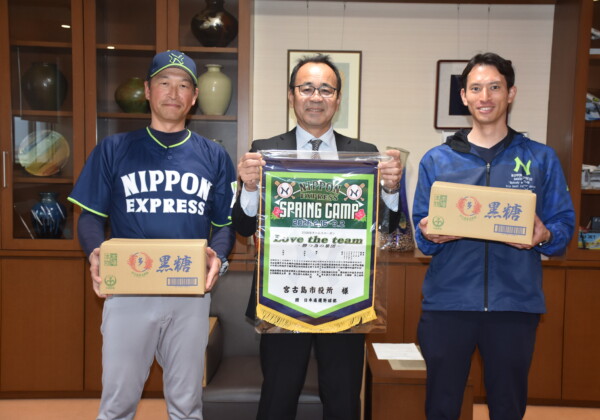 日本通運野球部の澤村幸明監督、マネージャーの小林玲雄さんが17日、市役所を訪問した。澤村監督は「18年目の宮古島キャンプになる...