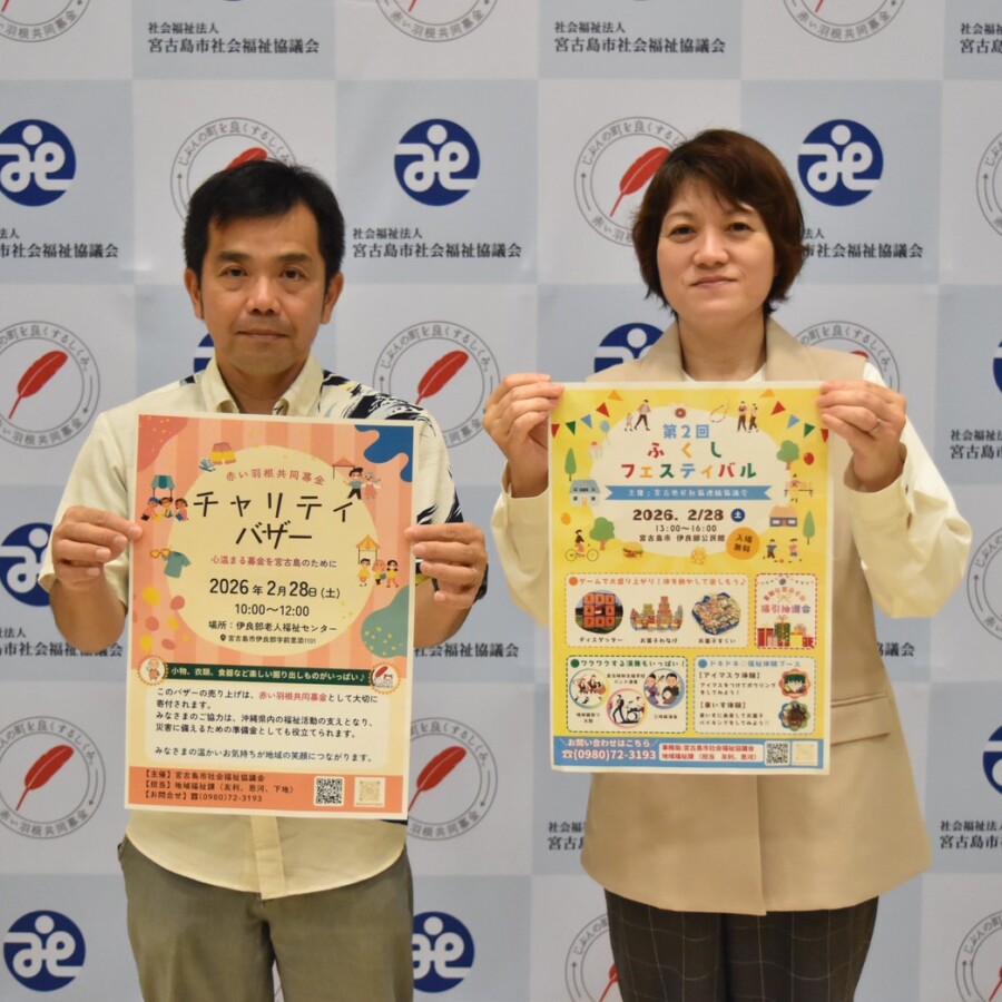 市社会福祉協議会は28日に伊良部公民館と伊良部老人福祉センターで「第2回福祉フェスティバル」と「赤い羽根共同募金チャリティバザ...