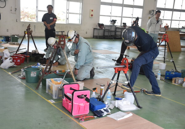 建築配管技能検定、6年ぶり島内で実施 若手職人ら10人が1、2級に挑戦