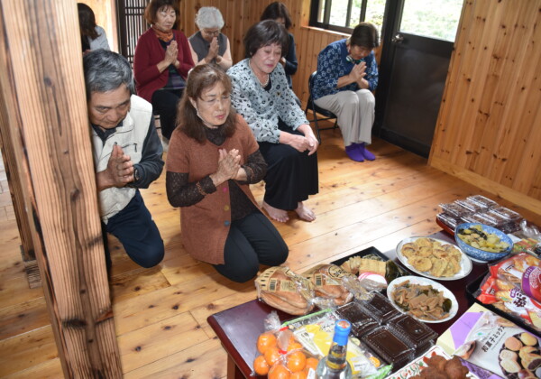 旧正月の17日、狩俣集落の創生神が鎮座するウプグフムトゥ(大城元)ではファーマー(氏子)らがご馳走を持ち寄り、線香を手向け、新...