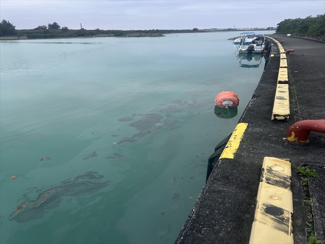 川満漁港に浮流油 岸壁沿い100メートルに点在 宮古島海保