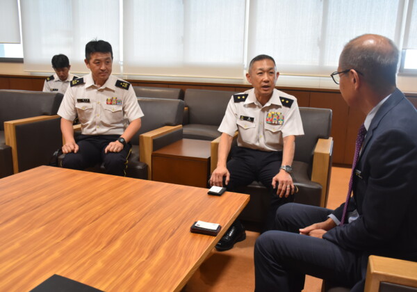 陸上自衛隊第十五旅団の泉秀夫旅団長(陸将補)が6日、市役所に嘉数登市長を訪問した。就任あいさつと同日、宮古空港で発見された不発...