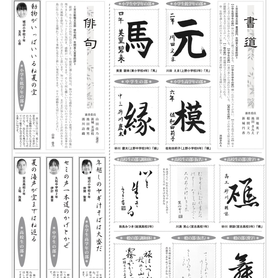 ●書道▽小学低学年…川田えま(上野小学校2年)「元」 ▽小学中学年…美里碧来(東小学校4年)「馬」 ▽小学高学年…佐和田莉子(...