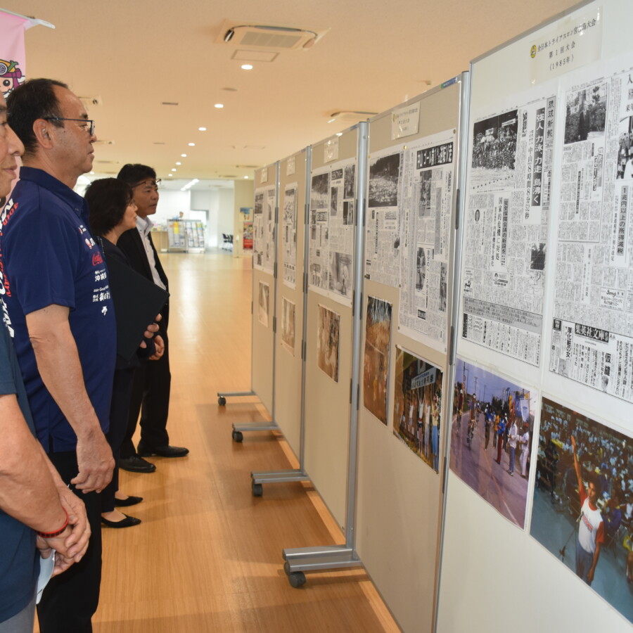 トライ大会、39年の軌跡たどる 市役所で写真展開幕 名シーン80枚展示