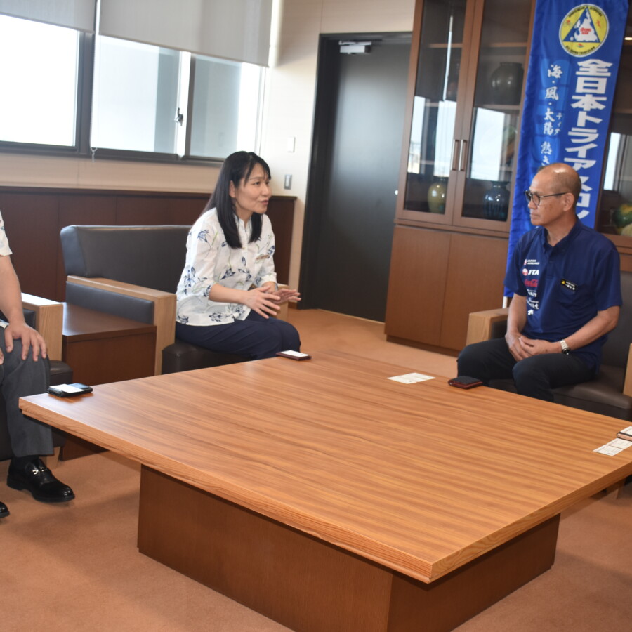 沖縄振興開発金融公庫理事の出口恭子氏が13日、市役所に嘉数登市長を訪問した。昨年7月の着任あいさつを兼ねて初めて来島した出口氏...