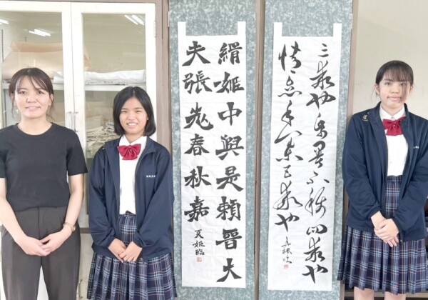 8月27日に県立武道館アリーナで行われた第37回沖縄県高等学校席上揮毫大会(県高等学校文化連盟ほか主催)に出場した宮古総合実業高校書道部から2年生の松本眞楓さんと1年生の新垣夏姫さんの2人が入賞し、全国高等学校総合文化祭(高文祭)および九州高文祭への派遣推薦を受けた。