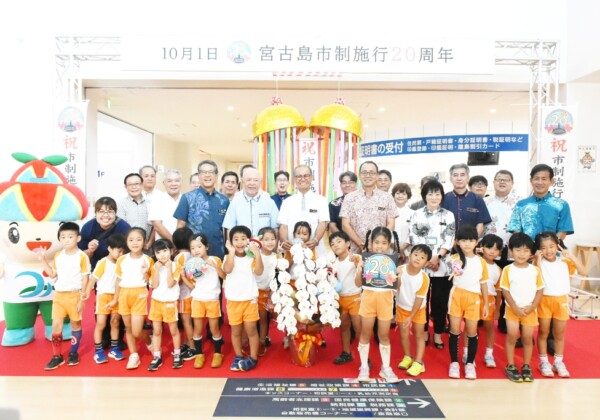 宮古島市(嘉数登市長)は10月1日に平良市、城辺町、下地町、上野村、伊良部町が合併して20年を迎えた。