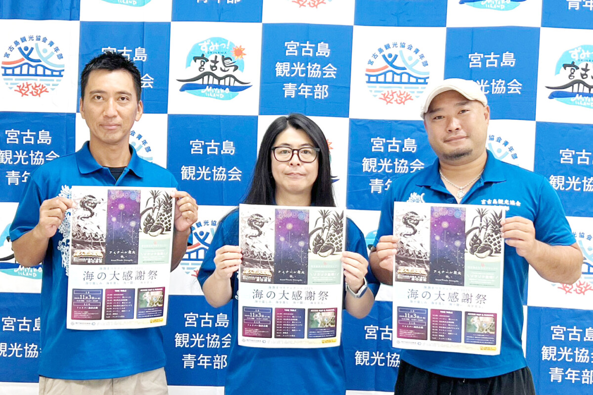 会見を開いた(左から)吉川修平同副委員長、西村部長、村瀬委員長 =宮古島観光協会・会議室 海に感謝、文化の日に大祭典 観光協会青年部 11月3日フィナーレ開催 2025.10.02 8 views Tweet Share Hatena Pocket RSS feedly Pin it このコンテンツを閲覧するにはログインが必要です。お願い ログイン. あなたは会員ですか ? 会員について Tweet Share Hatena Pocket RSS feedly Pin it 社会・一般 市制20年の歩みを一冊に みやこじま広報特別号 写真と年表で振... 16日早朝に不発弾処理 16日早朝に不発弾処理 半径400㍍立入禁止 関連記事一覧 城辺新城海岸保安林保全でロープ 里道との境界明確に 2022.10.06 物価高対策支援金 申請期限31日まで 2023.10.13 宮古島市、25人が定年退職 2022.04.01 限定キャラに人気「宮古島まもる君」新グッズ続々と 2010.04.14 所得向上へ持続可能図る 総会で宮古農業の底力示す 2... 2025.07.09 狩俣氏、米軍普天間基地のグアム移転は可能 2022.01.28 健診受診率向上と肥満対策 健康みやこじま21 市健康... 2025.05.31 4社、4個人に優良賞 24年度建設業者等表彰式 2024.09.25