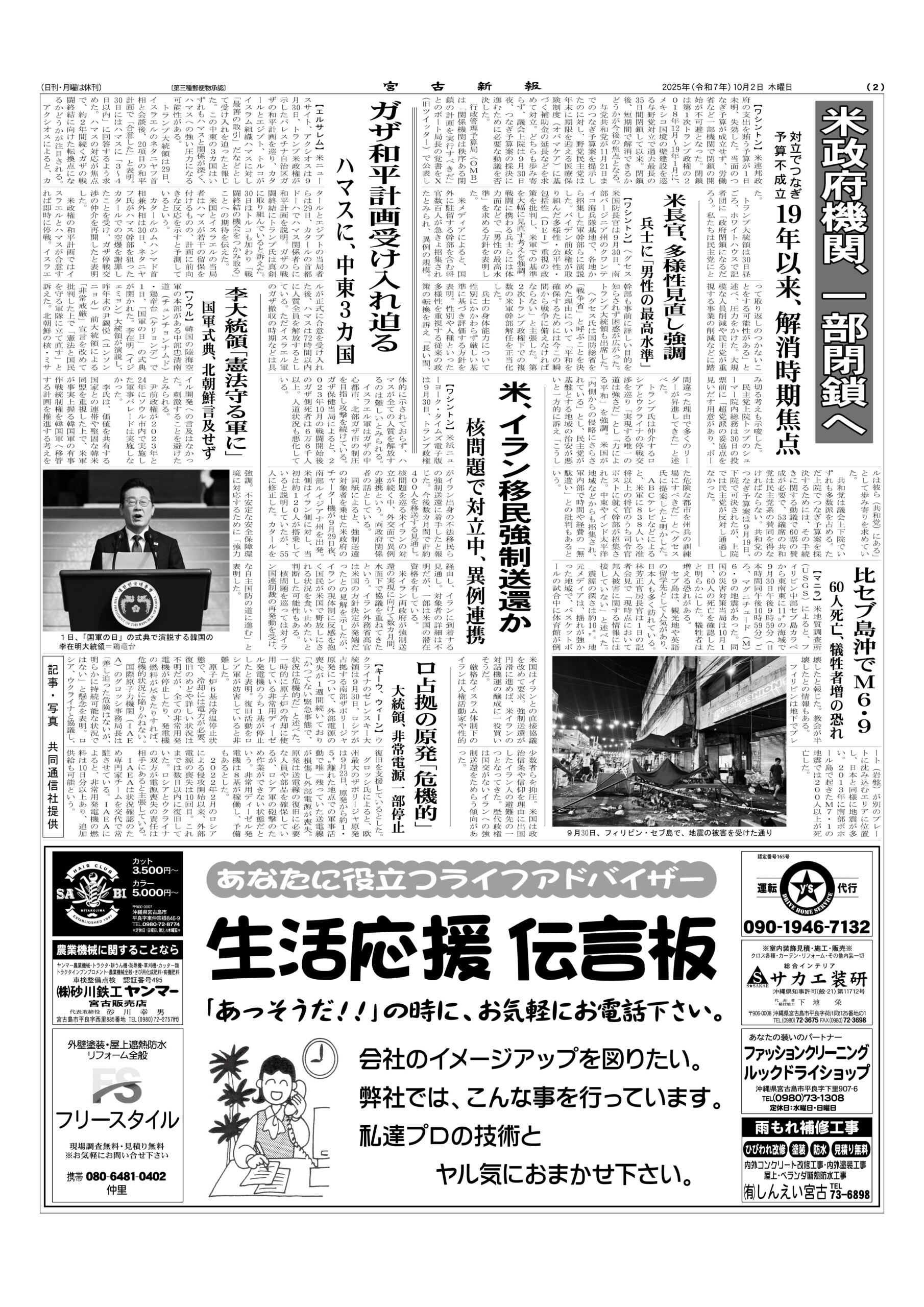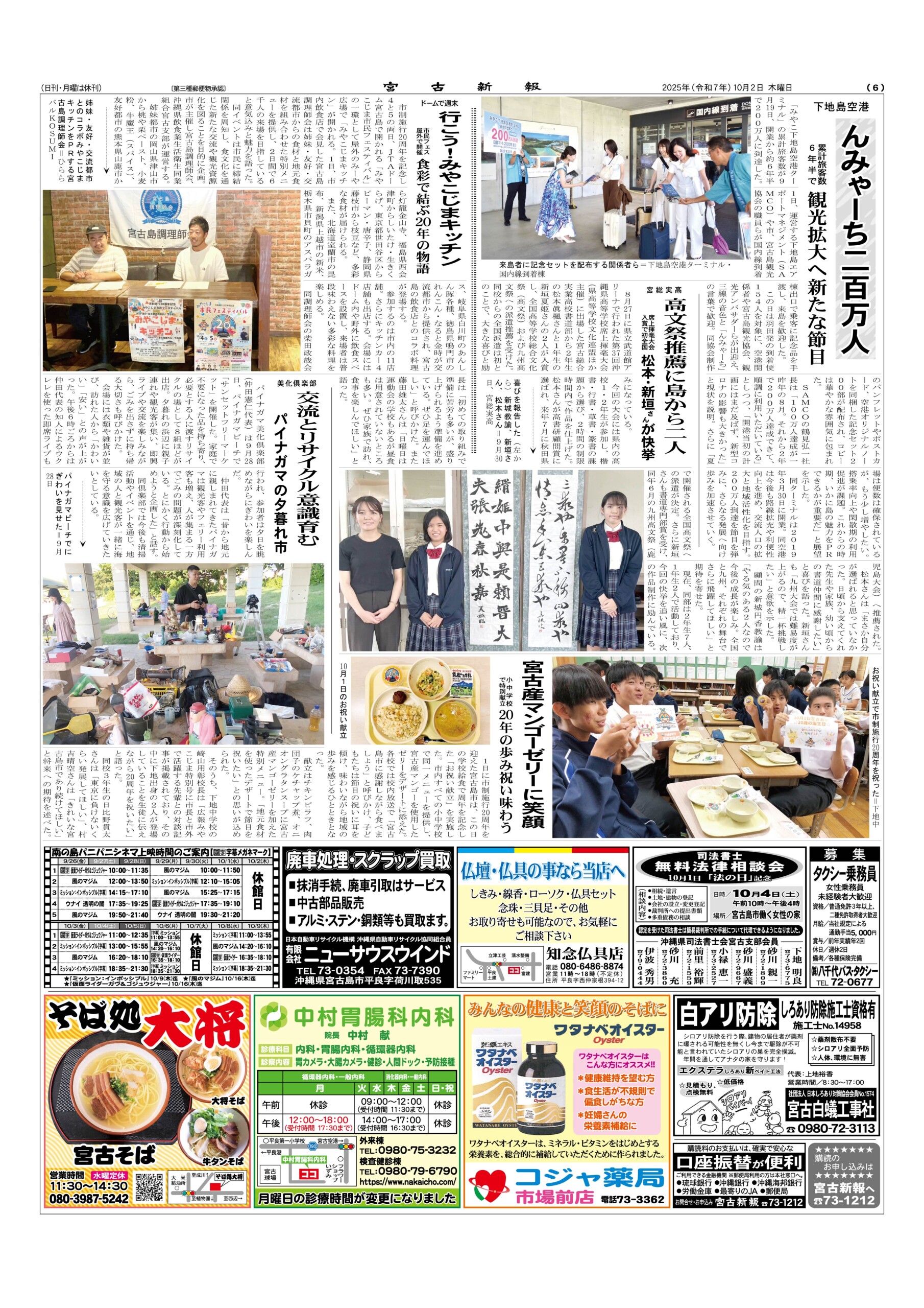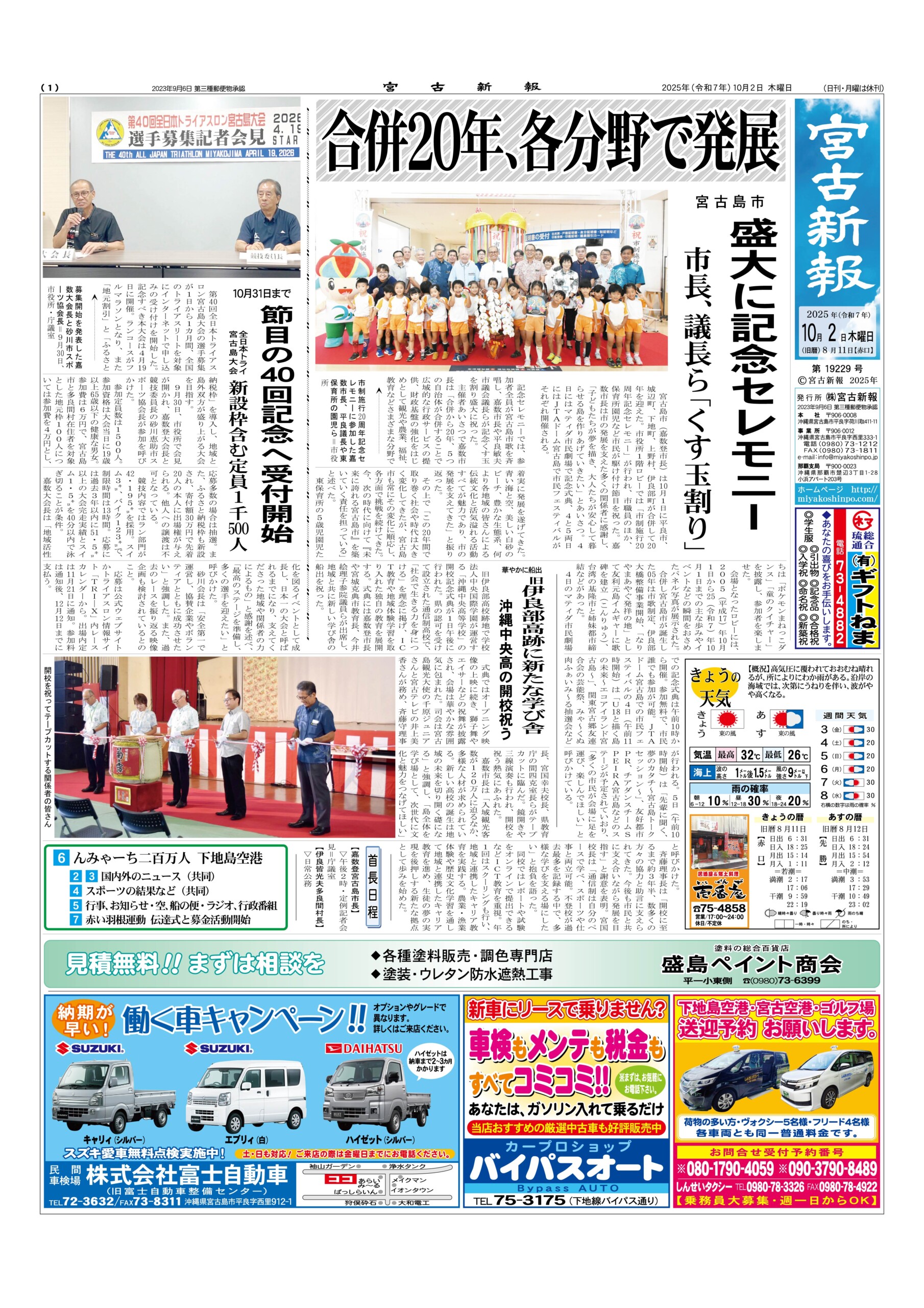 10月2日付紙面 2025.10.02 28,761 views Tweet Share Hatena Pocket RSS feedly Pin it ※ご利用の端末(PC・タブレット・スマートフォン)の拡大操作にて閲覧してください。 1面 2面 3面 4面 5面 6面 7面 9面 8面 10面 Tweet Share Hatena Pocket RSS feedly Pin it 電子版宮古新報 優勝の下崎Bが県大会へ 市老ク連GG 山原弘子さん個人最優秀賞 10月3日付紙面 関連記事一覧 5月24日付紙面 2023.05.25 3月22日付紙面 2024.03.22 8月15日付紙面 2025.08.15 9月5日付紙面 2024.09.05 6月8日付紙面 2025.06.08 2月17日付紙面 2024.02.17 11月30日付紙面 2023.11.30 9月3日付紙面 2025.09.03
