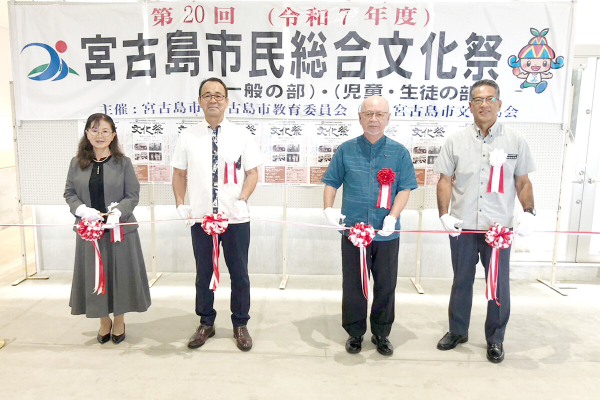 宮古島市制施行20周年を記念した第20回宮古島市民総合文化祭の展示部門一般の部・児童生徒の部が10日、未来創造センターで始まった。オープニングセレモニーでは、嘉数登市長や市文化協会の饒平名和枝会長らがあいさつし、市民の文化芸術活動の成果を広く発信する場として、多くの来場を呼びかけた。最終12日には表彰式、方言講座など多彩な催しを予定している。児童生徒の部は18日から展示される。