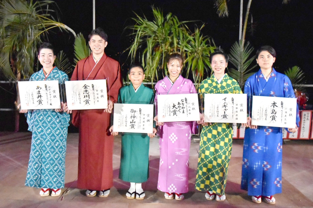 【一般の部】なりやまあやぐ大賞=川元真依▽金志川賞=狩俣良眞▽イムギャー賞=西銘結衣▽あま井賞(あまがーしょう)=ヴァンマイシー▽本島賞=川満美生【子どもの部】御神山賞=仲田明貴(敬称略)