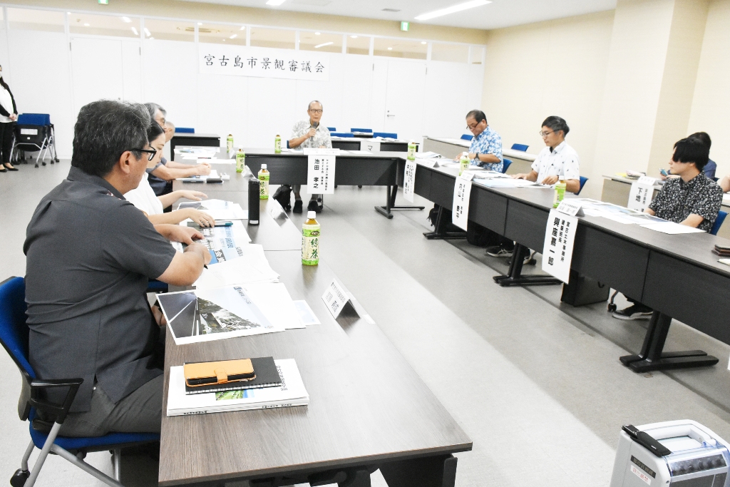 宮古島市景観審議会(池田孝之会長)の2025年度第2回審議会が17日、市役所で行われた。市(嘉数登市長)から諮問のあった宮古島長間ホテル(仮称)、武蔵野ホテル(仮称)のいずれの議案も承認とした。両ホテルとも委員らの指摘、修正に丁寧に対応していると評価。城辺保良の武蔵野ホテルは緑地率を上げる努力を促したが高さは32㍍から24・25㍍に下げ、吉野海岸からの見え方も高さの変更により稜線から突出した印象が軽減したと評価した。