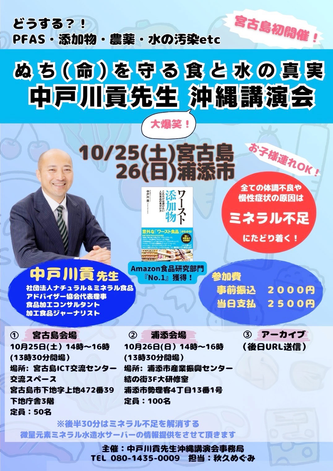 添加物・農薬・水汚染を問う 食と水テーマに25日講演会 2025.10.17 5 views Tweet Share Hatena Pocket RSS feedly Pin it このコンテンツを閲覧するにはログインが必要です。お願い ログイン. あなたは会員ですか ? 会員について Tweet Share Hatena Pocket RSS feedly Pin it 社会・一般 伝統の絆、子どもたちへ ミャークヅツ50オミーヤ 伊良部島小中... 高田青年会祭にぎわう 地域で結ぶ45年の輪 関連記事一覧 特攻艇秘匿壕周辺を清掃 平良狩俣で自衛隊OB支部 2022.10.25 抗原検査キットを寄贈 STS、下地小に300個 2023.08.19 降水量平年の4割 宮古島地方少雨続く 2023.03.08 上野葉たばこ生産振興会 太田会長に感謝状 2022.12.23 全校児童が陶芸に挑戦 福嶺小 香山善弘さん原岡剛志... 2024.12.26 今年度から償還開始 整備に9億円借り受け クルーズ... 2023.07.26 空の便欠航相次ぐ 台風影響 空港、帰路急ぐ旅客 2023.08.01 演歌の花舞台公開収録 一心歌の会、美声響かせる チ... 2023.10.12