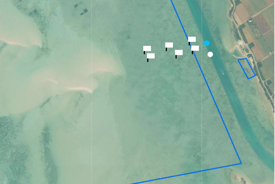 漁協では旗のあるアプローチ航路を通行するよう強く求めている(提供)