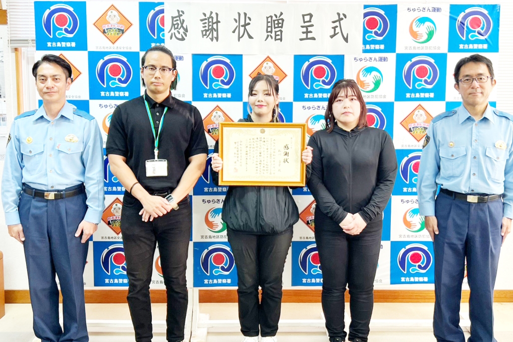 特殊詐欺を未然に防いだという松川さん(中央)と関係者ら =17日、宮古島警察署 勇気ある松川さんに感謝状 特殊詐欺被害を未然防止 2025.10.18 9 views Tweet Share Hatena Pocket RSS feedly Pin it このコンテンツを閲覧するにはログインが必要です。お願い ログイン. あなたは会員ですか ? 会員について Tweet Share Hatena Pocket RSS feedly Pin it 社会・一般 安全運転と接遇向上を 県ハイヤー・タクシー協会宮古支部 研修... 9月は観測史上最高気温 宮古島気象台 雨少なく晴天目立つ 関連記事一覧 子どもたちに平等な機会を 島の子未来応援基金が始動 2025.09.05 ひき逃げで女性が軽症 情報提供呼び掛け 2021.02.21 飛去数調査始まる アカハラダカの渡り 宮古野鳥の会... 2024.09.11 「絆」のひまわり満開 交通事故の根絶願う 2023.07.20 県ワーク・ライフ・バランス企業 大米建設を認定 2022.12.22 メーデー伊良部初開催、下地島空港軍事利用に反対 2010.05.01 来月10日から移動献血 県赤十字 市民へ協力呼び掛け 2023.09.27 城辺で29・0㍉観測 24時間降水量 2023.07.18