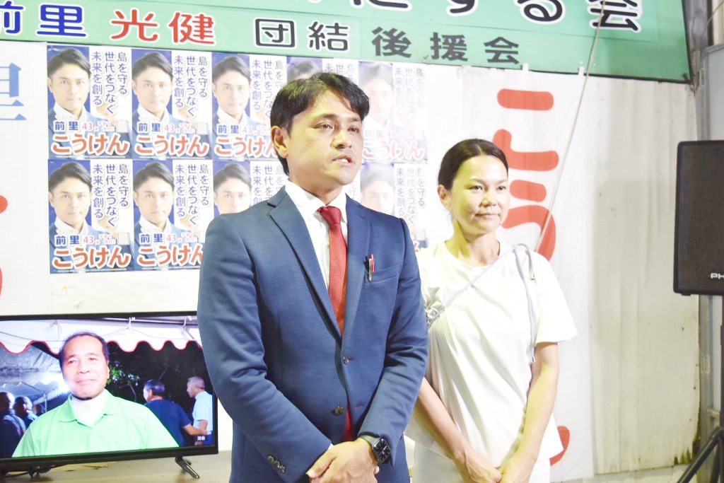 今年1月の市長選にも挑んだ経験を持つ前里さんは「前回の選挙戦を生かし、改めて市民の声に耳を傾け信頼を積み重ねた戦いだった」と今回の市議選を振り返り、「市民の思いを背負い、島の未来に責任を果たしていく」と決意を語った。