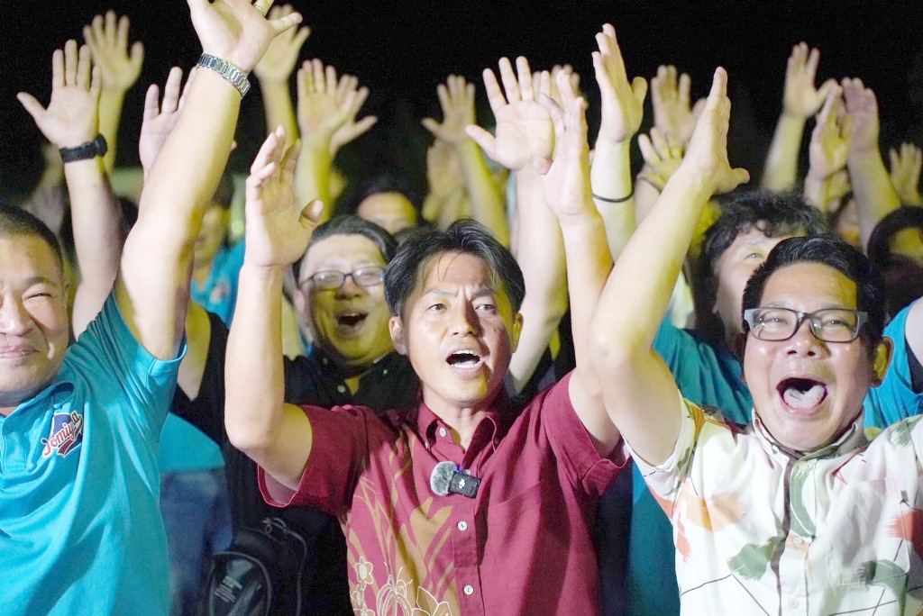 26日に投票が行われた第6回宮古島市議会議員選挙は午後9時から開票が始まり、作業の進行とともに「当確」の速報がテレビ画面に映し出されるたび、市内各地の選挙対策事務所は当選を果たした候補者と駆けつけた大勢の支持者たちの歓喜に包まれた。「バンザイ三唱」が繰り返され、22議席に34人が争う厳しい選挙戦を勝ち抜いた喜びを分かち合った候補者は歓喜とともに、これから始まる市議としての重責に気持ちを引き締めていた。