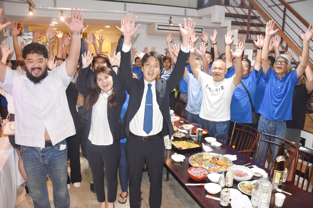 平良さんは「当確の知らせを受けた時は、今まで支持してくれた方々への感謝の気持ちであふれた」と喜びを語り「若い力を武器に、地域の声に耳を傾けしっかりと市政に届けていきたい。『この島に生まれて良かった』と子どもたちに思ってもらえるような宮古島にしていく」と決意を新たにした。