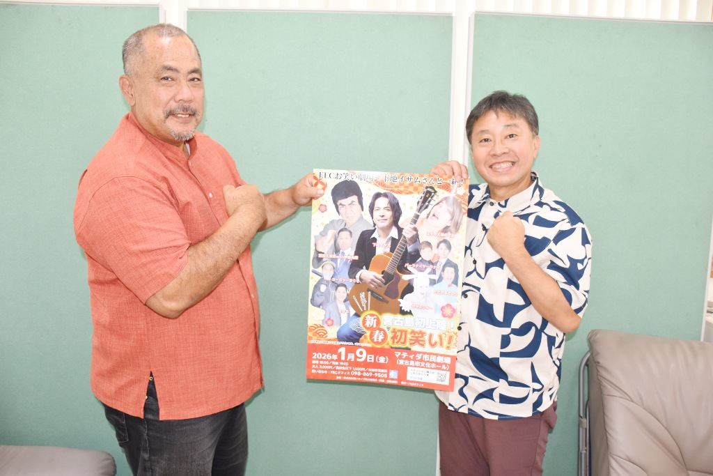 「新春初笑い」公演をPRする山城さん(右)、武島さん =10月29日、宮古新報社 「宮古に最高の笑顔を」 1月9日マティダで 豪華顔ぶれで笑いの新年へ 2025.10.31 9 views Tweet Share Hatena Pocket RSS feedly Pin it このコンテンツを閲覧するにはログインが必要です。お願い ログイン. あなたは会員ですか ? 会員について Tweet Share Hatena Pocket RSS feedly Pin it 社会・一般 観光の仕事を肌で知る ホテルで実践の学び 上野中生徒ら職場体験 平良支部勢が上位独占 宮古地区老ク連第33回GG 下崎Bチーム... 関連記事一覧 長期台風影響想定し 陸自新配属隊員が救助訓練 2023.08.05 働く女性の家で「手話講座」募集 27日締め切り 2022.12.14 雇用、コロナ前比改善 3月労働力調査 5カ月連続で... 2025.05.08 九州番組コンでグランプリ 宮古テレビ初 難波さんが... 2025.06.03 「特殊詐欺に気をつけて!」 宮古島署・地区防犯協 ... 2024.12.13 泡盛鑑評会始まる 11月1日に結果発表 2022.09.30 「質の高い保育」を研究 セミナーに約300人参加 2023.06.04 「ガーディ」が沖縄応援 県とポケモンが連携協定 沖... 2024.08.03