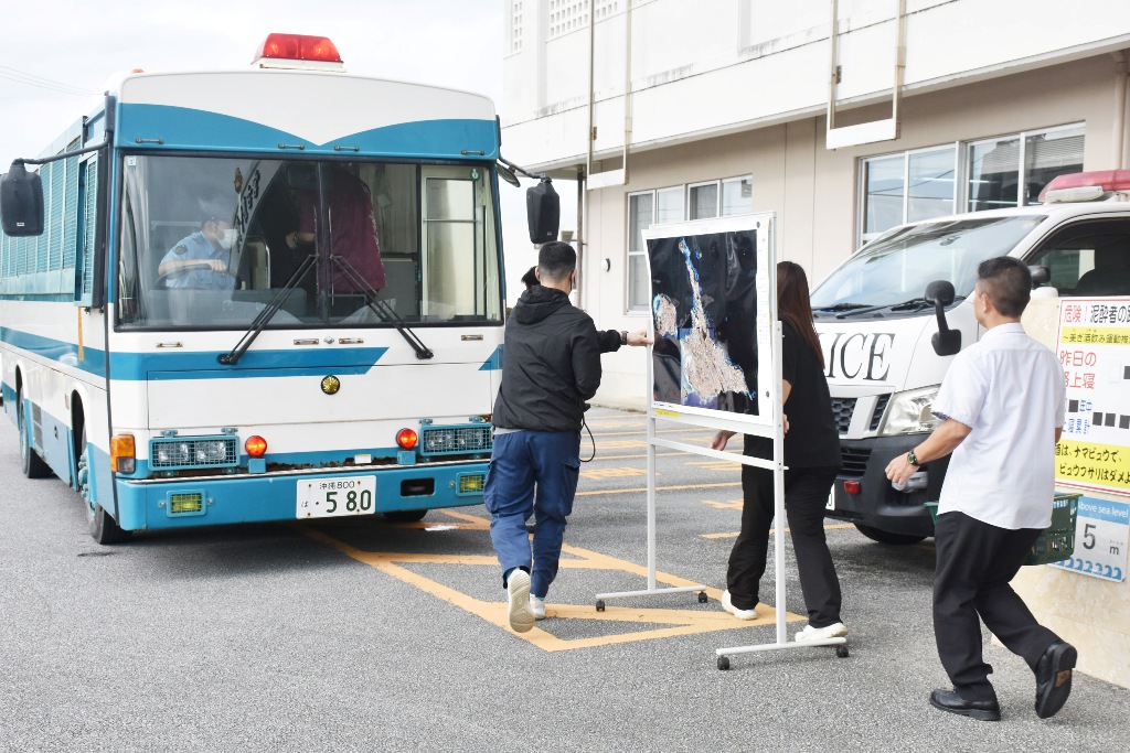 訓練は、14日午後3時40分に宮古島近海を震源とする強い地震(マグニチュード8・0)が発生し、宮古島では最大震度7の揺れを観測。地震の影響で警察庁舎の壁、柱に亀裂が確認され、余震で倒壊の恐れがあるため警察署機能を移転するとの想定で実施した。
