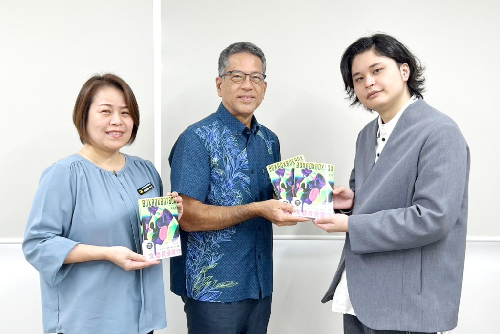 坂本さん(右)が宮城教育長(中央)と與那覇律子館長に受賞作の書籍を寄贈した =市役所 「島の人に読んでほしい」 文芸の新星坂本湾さん 受賞作3冊を市に寄贈 2025.11.21 6 views Tweet Share Hatena Pocket RSS feedly Pin it このコンテンツを閲覧するにはログインが必要です。お願い ログイン. あなたは会員ですか ? 会員について Tweet Share Hatena Pocket RSS feedly Pin it 社会・一般 島内完結型教育実現へ 提携報告会見 島の高等学院と沖縄中央高... 子の好き、個性をどう伸ばす? 坂口シオン氏 子育て学ぶセミナ... 関連記事一覧 酒類卸、売り上げ9割減少 2022.01.20 領空侵犯常態化を予想 国基研総合安保P 挑発にどう立... 2025.06.07 芽の会22日に演奏会 ヴォンゴレーズ 「宮古ブルー」... 2025.02.14 「安全な電気使用を」 電気工事業協同組合 事故防止... 2025.08.01 NTTが自動運転実証実験へ 28日、旧来間小中運動場で 2024.11.25 新型コロナ14日、宮古島市は4人【速報値】 2022.12.14 若林凌駕がFMみやこ新番組 来月2日正午から「日曜... 2025.10.30 専門家3人が情報共有 琉大病院がんセ主催 病院選び... 2025.01.25