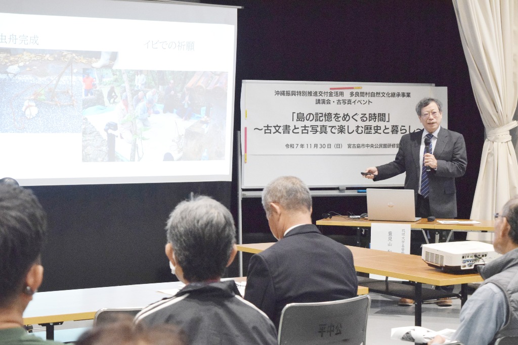 豊見山さんが史料を示しながらウプリや役人教育、島の暮らしを解説した =11月30日、市未来創造センター・研修棟 古文書と古写真語る島の記憶 豊見山名誉教授が歴史解説 2025.12.02 6 views Tweet Share Hatena Pocket RSS feedly Pin it このコンテンツを閲覧するにはログインが必要です。お願い ログイン. あなたは会員ですか ? 会員について Tweet Share Hatena Pocket RSS feedly Pin it 社会・一般 技と心、静かに研ぎ澄ます 合気会宮古 昇段審査で日頃の成果 恩返しの寄付金届ける 西城小・城東中へ 還暦迎え33期生母校へ 関連記事一覧 土壌改良材、ろ過など4件 2022.03.05 新敬老者は21人 友利部落会敬老会 2024.12.02 住民同士の連携確認 池間自治会、Jアラートで避難訓練 2022.11.03 下地中10人が成長の報告 台湾国際交流 「海外体験が... 2025.09.05 北中学校吹奏楽部サックス三重奏が県代表 2022.12.08 久松中Bチームが優勝 科学の甲子園宮古地区代表選考会 2022.07.31 旅から学ぶ人生の勇気 市民講習会 世界巡る池城さん講話 2024.12.12 租税教育用マンガ本贈る 法人会青年部会が市教育委員... 2024.06.12
