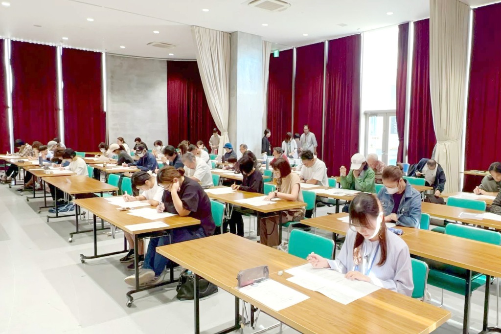 時間になると参加者が一斉に検定に臨んだ。問題は「市の蝶は何か」「方言を使うと首から掛けられたものは何か」「ユネスコ無形文化遺産に登録された奇祭は何か」「伊良部大橋の長さを語呂合わせで覚える呼び方はどれか」など、宮古の生活・文化・自然に関する多岐にわたる内容が並んだ。
