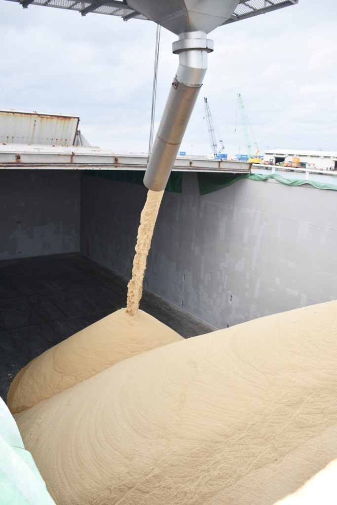 城辺工場からダンプトラックで平良港に運ばれた分蜜糖は「栄聖丸」に積み替えられたあと千葉県の三井製糖に輸送される。