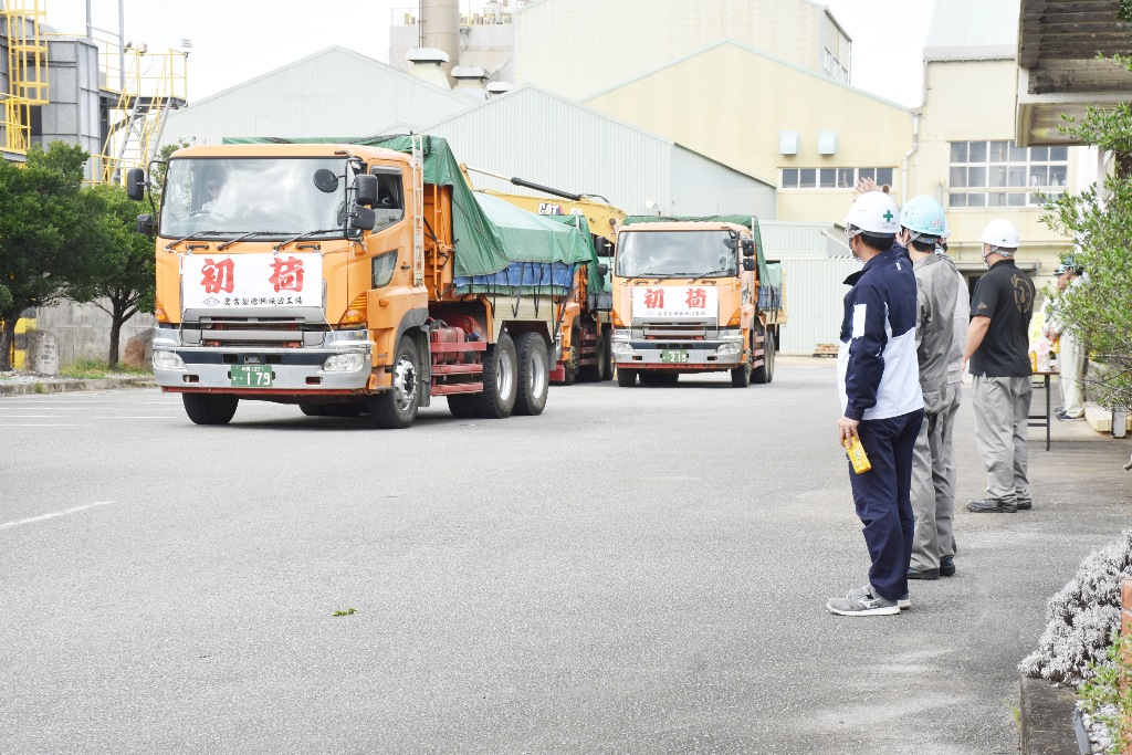 砂川工場長は「出荷数量は400㌧から450㌧を見込んでいる。製糖工場の先頭を切って日本一早い製品出荷となる。皆さんには安心安全、無事故無違反に心掛けての輸送をお願いしたい」とあいさつした。