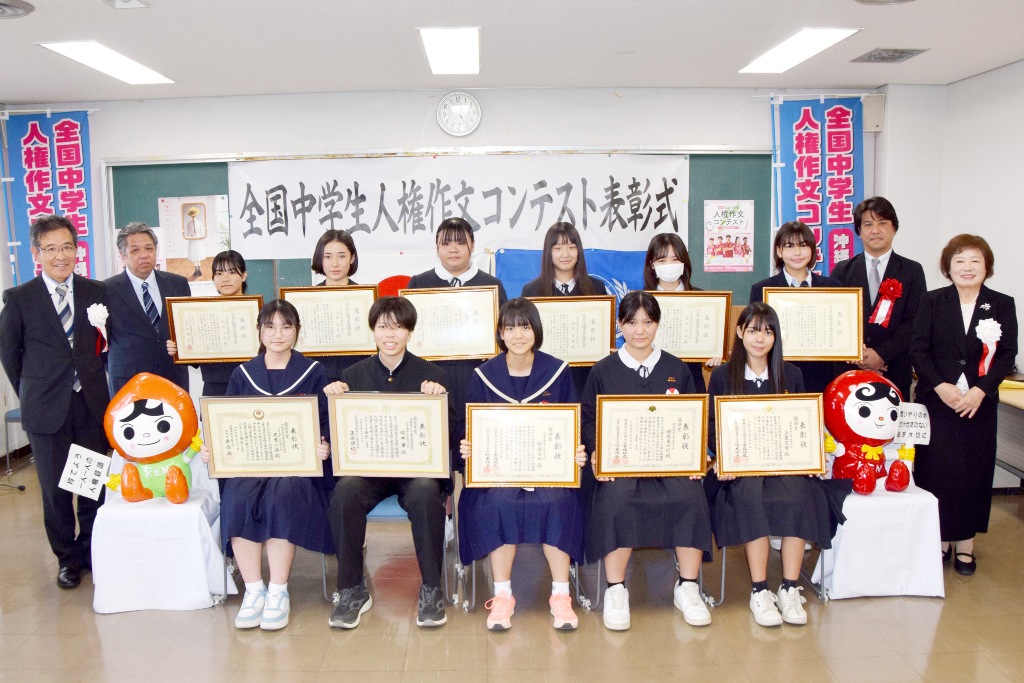 同コンテストは、人権問題をテーマに中学生が自らの思いや体験を作文にまとめることで、人権尊重の重要性や必要性への理解を深めることを目的に毎年実施されている。宮古地区からは11校314編の応募があり、県大会入選に加え、地区独自の表彰も行われた。
