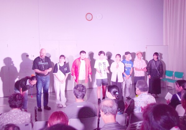 お芝居やりたい人たち(加持岳志代表)による「即興の劇場」が12と13の2日間、市未来創造センターで開かれた。加持さんが呼びかけ、役者11人が観客約30人を前に、その場で生まれる物語を演じた。