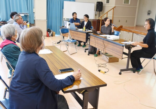 てぃだぬふぁ島の子の平和な未来をつくる会(共同代表・石嶺香織、楚南有香子)主催の「島のヒト(しまんちゅ)の声を聞け!政府交渉報告会」が6日、市働く女性の家で行われた。
