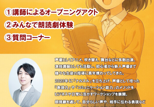 声を使った表現の楽しさを体感する朗読劇体験会「声で遊ぶ 心で感じる 初めての朗読劇」が27日、鏡原放課後児童クラブで開かれる。