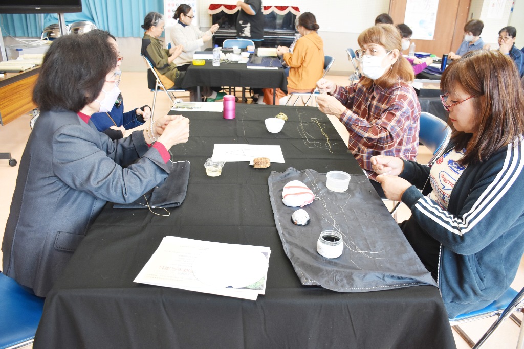 同交流会は、宮古苧麻績み保存会との共催で苧麻糸手績みの技術者や研修生らが一堂に会し、苧麻糸手績み作業を行いながら交流を深めることで技術の継承と発展につなげることを目的に開催。関連行事として5日~16日まで宮古島市役所1階エントランスホールで苧麻糸手績みの技術、各教室の紹介などの展示会を行っている。