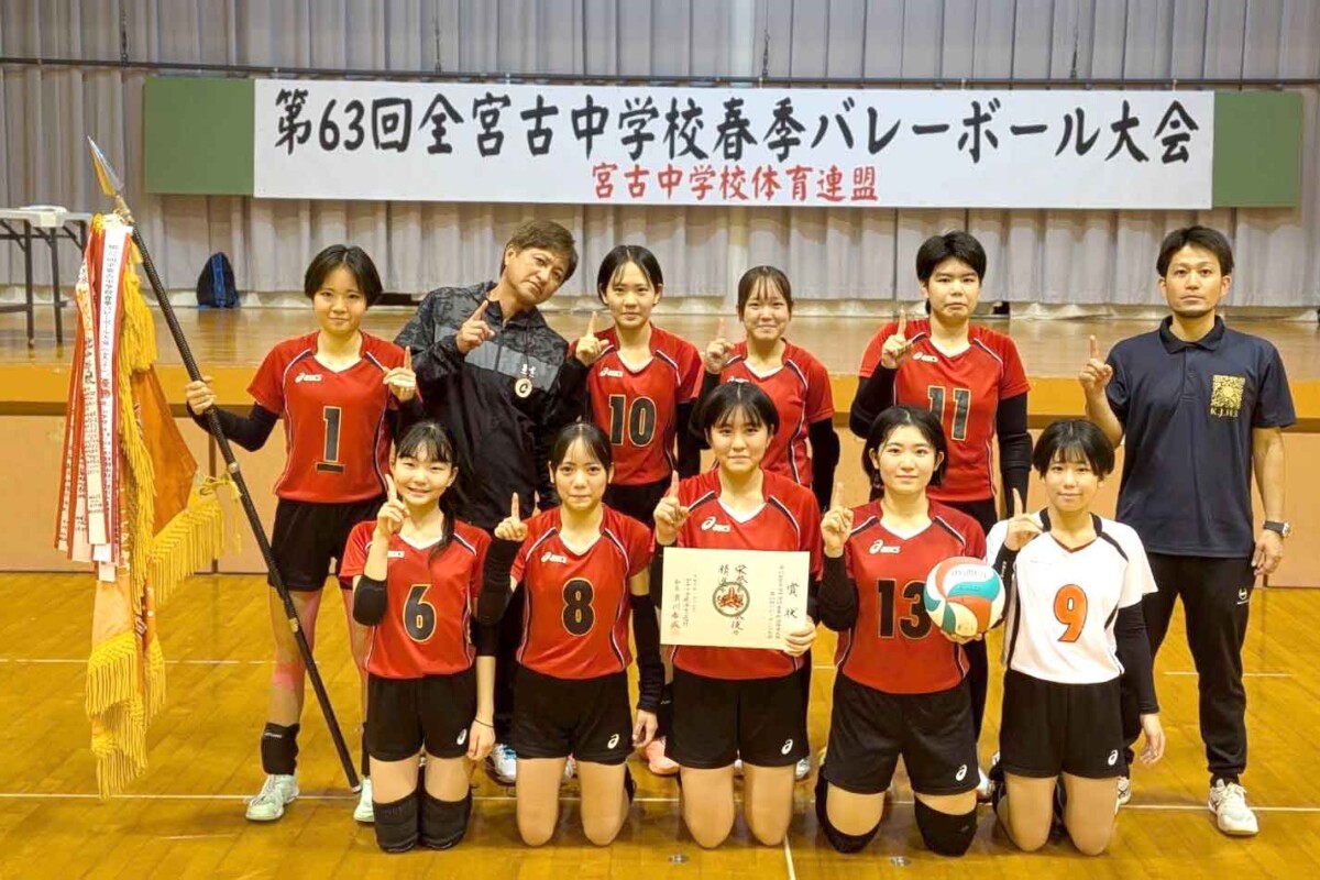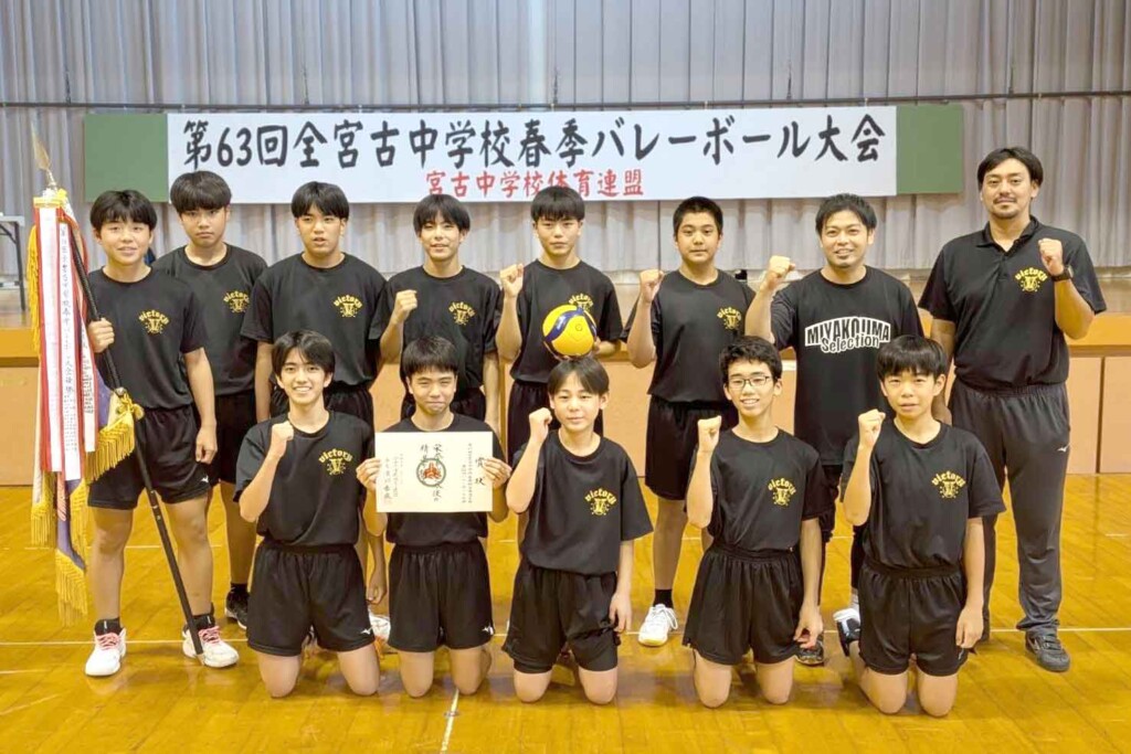 第63回全宮古中学校春季バレーボール大会が17日、市上野体育館で行われた。出場した男女の各校はともにトーナメント方式で熱戦を展開。その結果、男子は平良、女子は北がそれぞれ栄冠を手にした。