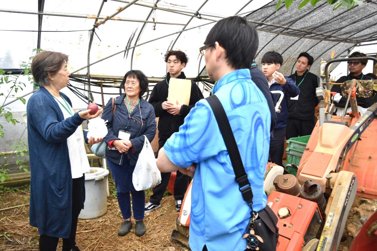 そのうち、久保さんの畑では、パッションフルーツやラディッシュなどが紹介され、「ラディッシュは彩りが良く、甘みがある」と説明。参加者からは「何月ごろに収穫できるのか」「飲食店向けの出荷対応は可能か」などの質問が寄せられた。