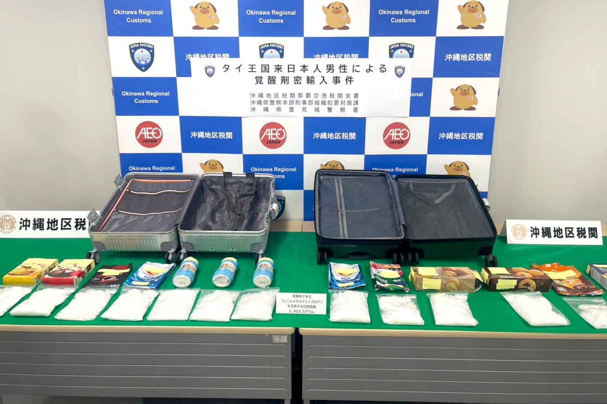 事件は、2025年9月30日(現地時間)、タイ・ドンムアン国際空港を出発した航空機で発生。被疑者は覚醒剤をスーツケース2個に分けて隠し、那覇空港から国内へ持ち込もうとした。那覇空港税関での検査により不審物が発見され、鑑定の結果、フェニルメチルアミノプロパンを含む覚醒剤であることが判明した。押収量は約5・9キログラムに上り、近年の水際事案としても大量とされる。