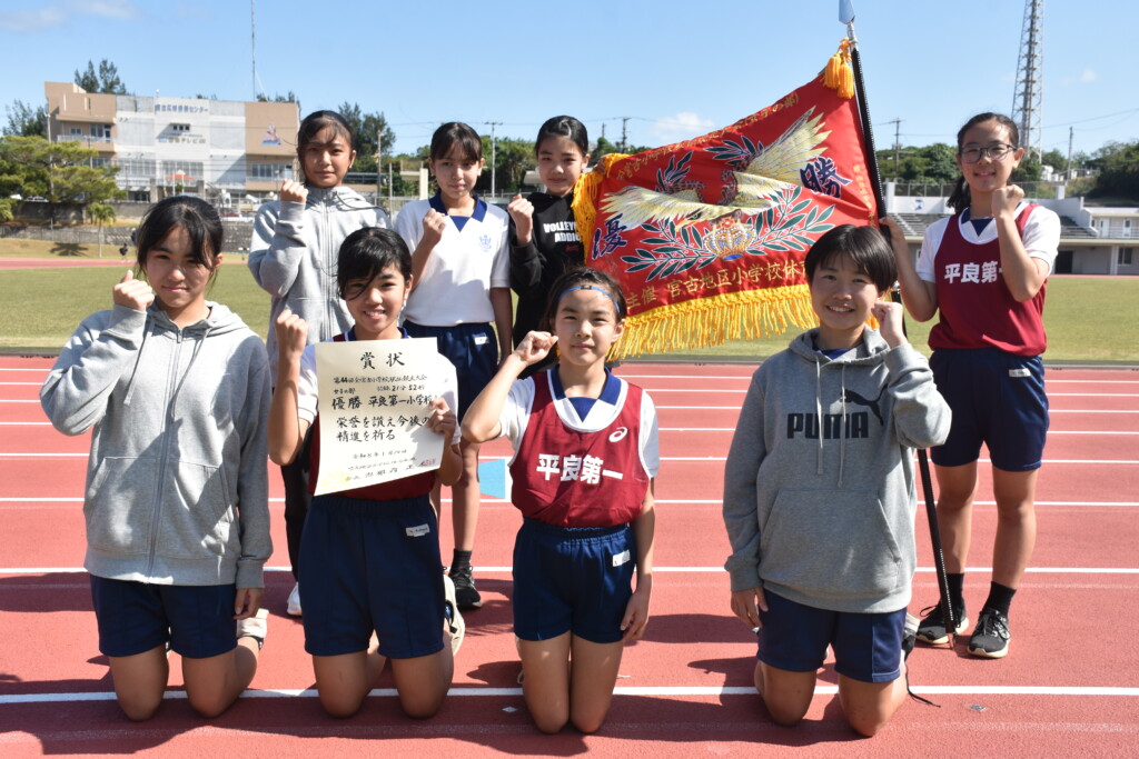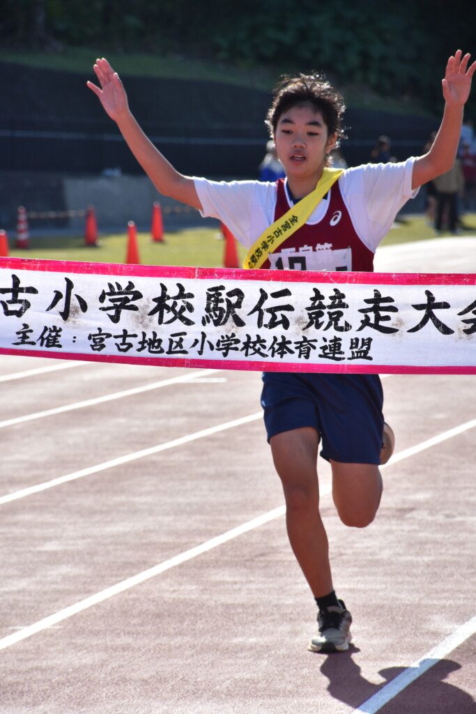 【区間1位】1区(1・2㌔)=塩川海愛(平一A)4分17秒▽2区(1・2㌔)稲垣千花(平一A)4分08秒▽3区(1・2㌔)=與那原羽未(平一A)4分23秒▽4区(1・2㌔)=下地咲和(平一A)4分27秒▽5区(1・2㌔)=池原凛(北A)、川満華帆(平一A)4分37秒