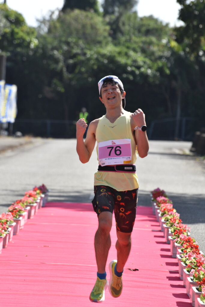 第36回宮古島100キロワイドーマラソン(宮古島市など主催)が25日、100キロの部と50キロの部で行われ、島内外から出場したランナーらが宮古路を走った。541人が挑み352人が完走。100キロの部男子は藤原拓(39)=埼玉県=が6時間51分45秒の大会新記録で初優勝した。同女子は高井美奈子(59)=千葉県=が9時間7分24秒で2年ぶり3度目の頂点に立った。50キロの部男子は松下和樹=東京都=が3時間19分42秒で初優勝、同女子は谷中千華=宮古島市=が3時間53分59秒で3連覇を果たした。