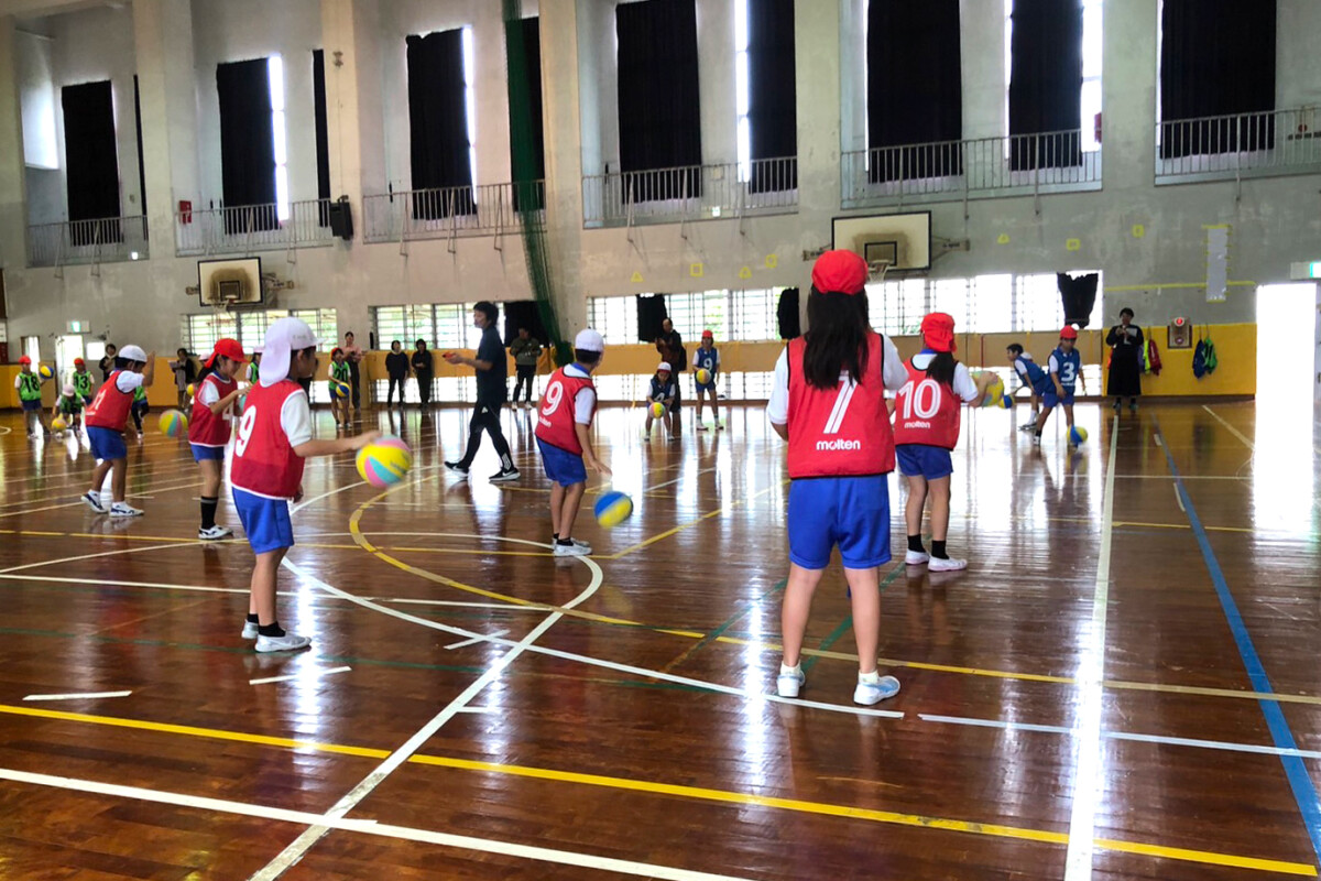 県教育委員会の「小学校体育科指導コーディネーター教員配置校」に指定されている下地小学校(下地美和子校長)で27日、体育科の公開授業が行われた。同校の体育コーディネーターを務める宮国智士教諭と3年1組担任の玉寄里沙教諭による指導のもと、児童34人がゴール型ゲーム「セストボール」に挑戦。管内の小中学校やこども園から集まった約30校の教職員らが、児童が主体的に運動へ取り組むための授業構成や工夫を視覚的に学んだ。