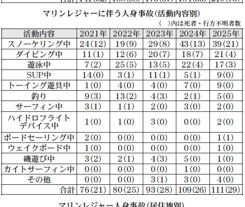 第11管区海上保安本部は5日、2025年1月1日から12月31日までの管内における海難発生状況(速報値)を公表した。