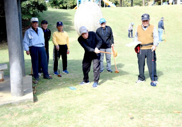 東川根老人ぬくもりクラブ(川満俊夫会長)は4日、新年恒例の「新春グラウンドゴルフ大会」を盛加越公園で開いた。