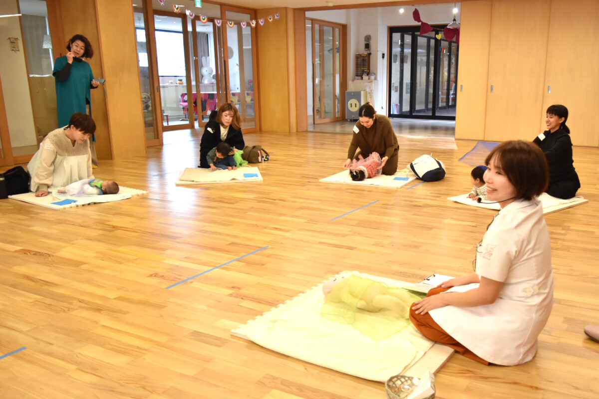 新里さんは「普段、赤ちゃんの裸に触れながら全身をじっくり見る機会はなかなかない。マッサージを通して赤ちゃんの体をよく見ながら触れ合ってほしい」と話した。