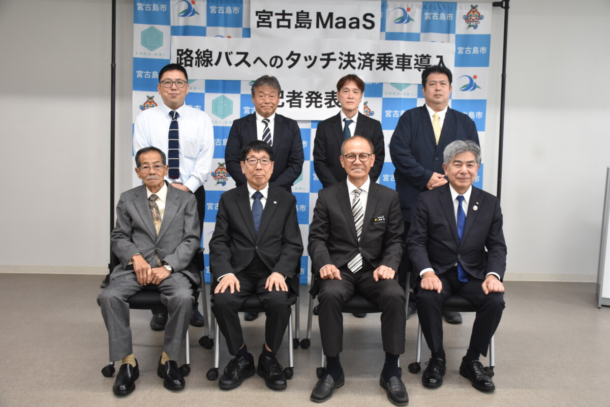 琉球銀行(島袋健頭取)とジョルダン(東京、佐藤俊和社長)は2日、市役所で共同記者発表を行い、あす4日から市内路線バス全線を対象とした「宮古島MaaS実証実験」を開始すると発表した。新たに八千代バス・タクシーと共和バスがクレジットカード等のタッチ決済を導入。これにより、既に導入済みの宮古協栄バス、中央交通を含む市内全4社の路線バスでキャッシュレス乗車が可能となる。期間は28日まで。実験を通じ、移動データの蓄積による将来的な路線見直しや観光の効率化を目指す。
