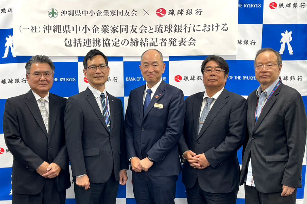 【那覇支局】(一社)沖縄県中小企業家同友会と琉球銀行は6日、那覇市の琉球銀行那覇ポートビルで、包括連携協定の再締結に関する記者発表会を開いた。同友会の法人化を受け、2018年に締結した協定を継承しつつ、連携体制を改めて構築する。事業承継や人手不足など県内中小企業が抱える課題に、金融の枠を超えた伴走支援で対応し、地域経済の持続的発展につなげる狙いだ。