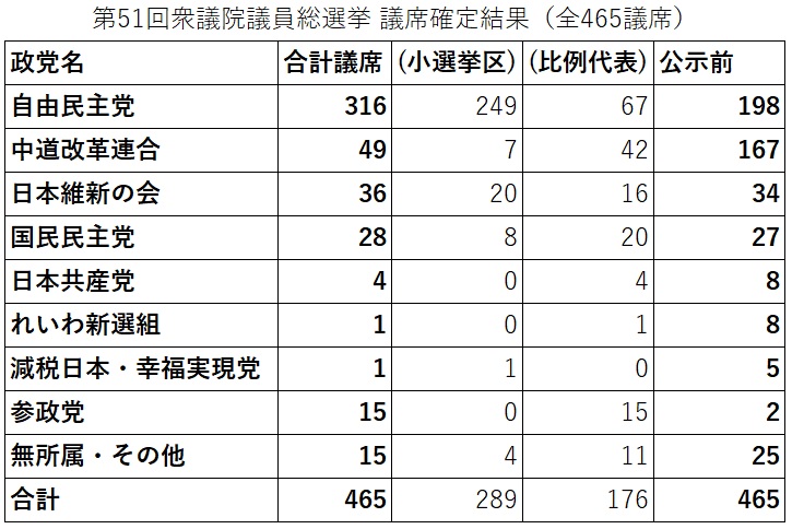 第51回衆議院議員総選挙は8日、投開票が行われ、自民党が単独で定数の3分の2を上回る316議席(追加公認含む)を獲得し、歴史的な圧勝を収めた。一つの政党が獲得した議席数としては戦後最多となり、日本政治は大きな転換期を迎えた。沖縄県内においても自民が全4選挙区で議席を独占し、1996年の小選挙区制導入以来、初の快挙を成し遂げた。自民党が圧勝しすぎた結果、比例代表の当選枠に対して候補者が不足し、議席を他党へ譲る現象も起こった一方、立憲民主党と公明党による「中道改革連合(中道)」は、小選挙区でわずか7議席に留まるなど惨敗。野党第一党として存亡の危機に立たされている。
